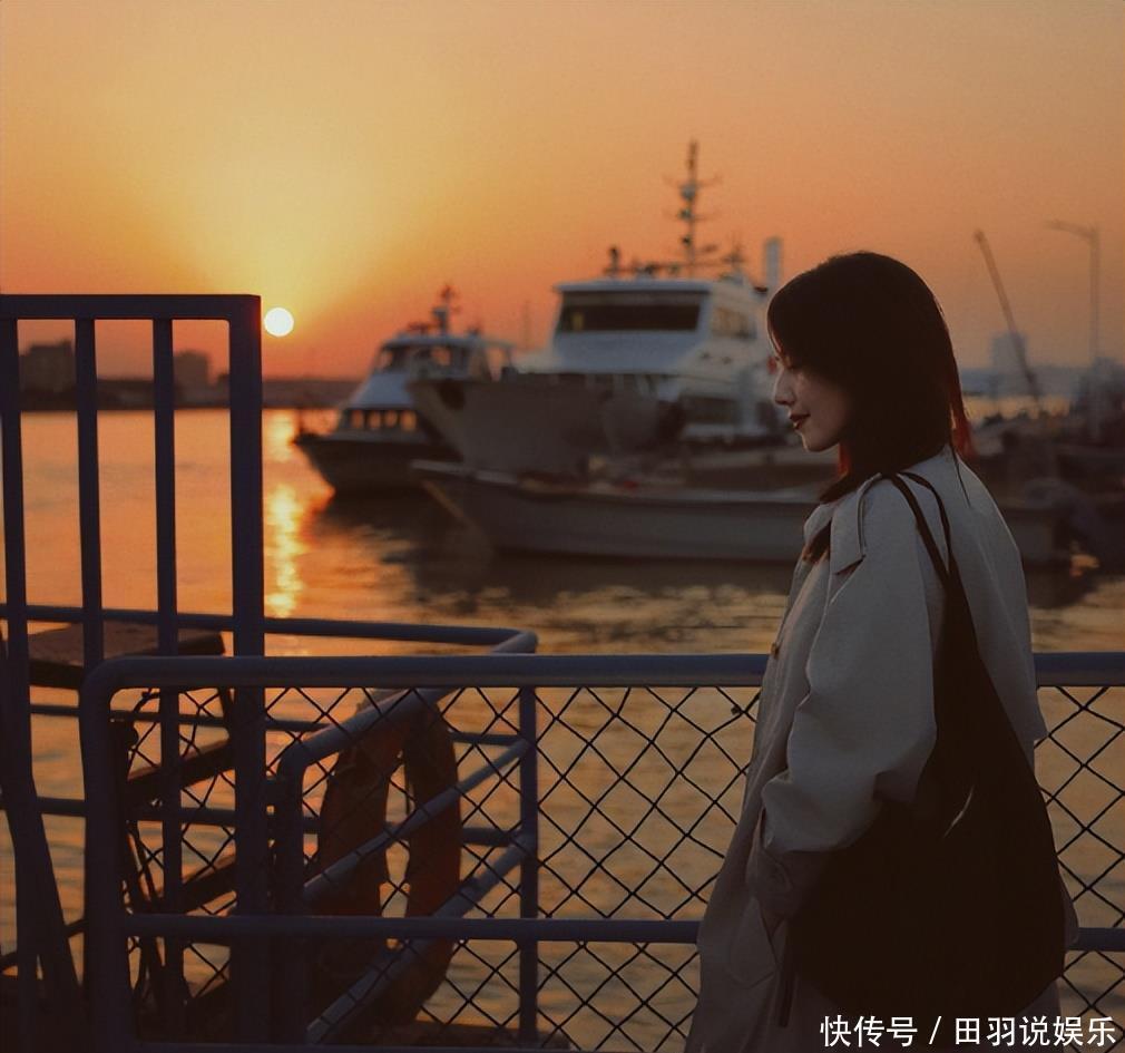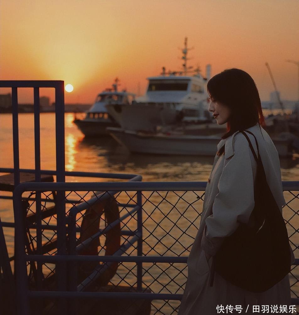 46岁的人了,就随便往街边一站,夕阳一打,光线把她整个人镀成金色。