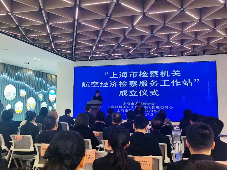 近日,由上海市人民检察院主办,闵行区人民检察院协办的“上海市检察机关航空经济检察服务工作站”(以下简称“工作站”)成立仪式在虹桥国际中央商务区举行。现场,闵行区检察院同步发布了落实《上海市检察机关关于依法服务保障上海国际航运中心建设的实施意见》的工作方案,以及《服务保障国际航运中心建设十条意见》。