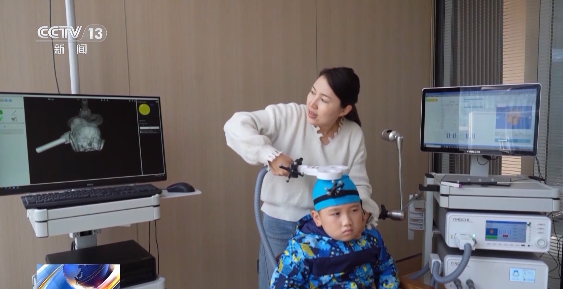 三年前,四川成都市前沿类脑人工智能创新中心的科研人员开始尝试,通过脑机接口精准神经调控技术,为孤独症患者进行治疗。阳阳幸运地成为第一批接受治疗的患儿。