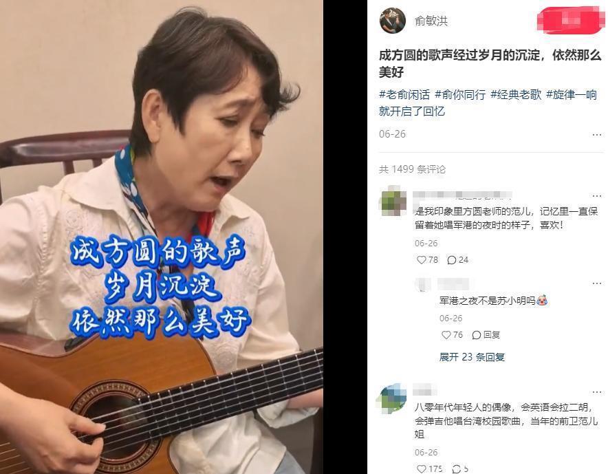 今年6月份,俞敏洪就发过一个成方圆的视频,只见她抱着吉他轻轻弹唱,虽然肉眼可见的老了,但很松弛。