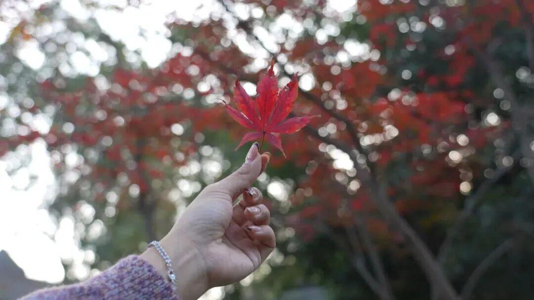 不用讲究拍全景,可拍一片枫叶,或拍地上叠在一起的落叶,阳光洒在上面,连叶脉里都藏着秋的故事。