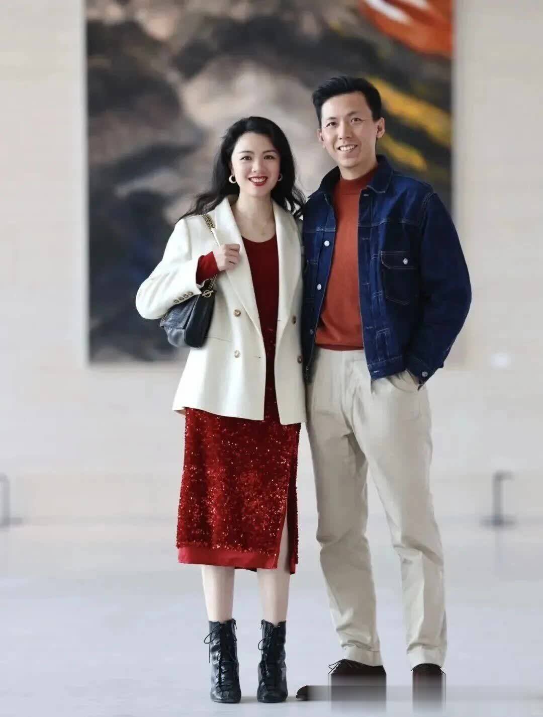 深红色亮片裙在阳光下闪闪发光,外面的白色外套和黑色高跟鞋则将整体造型完美地衔接起来。夫妻俩的穿搭展现了他们的深厚默契与对生活的热爱,而那份穿搭中的精致与从容,恰如他们之间无言的支持与理解。▼