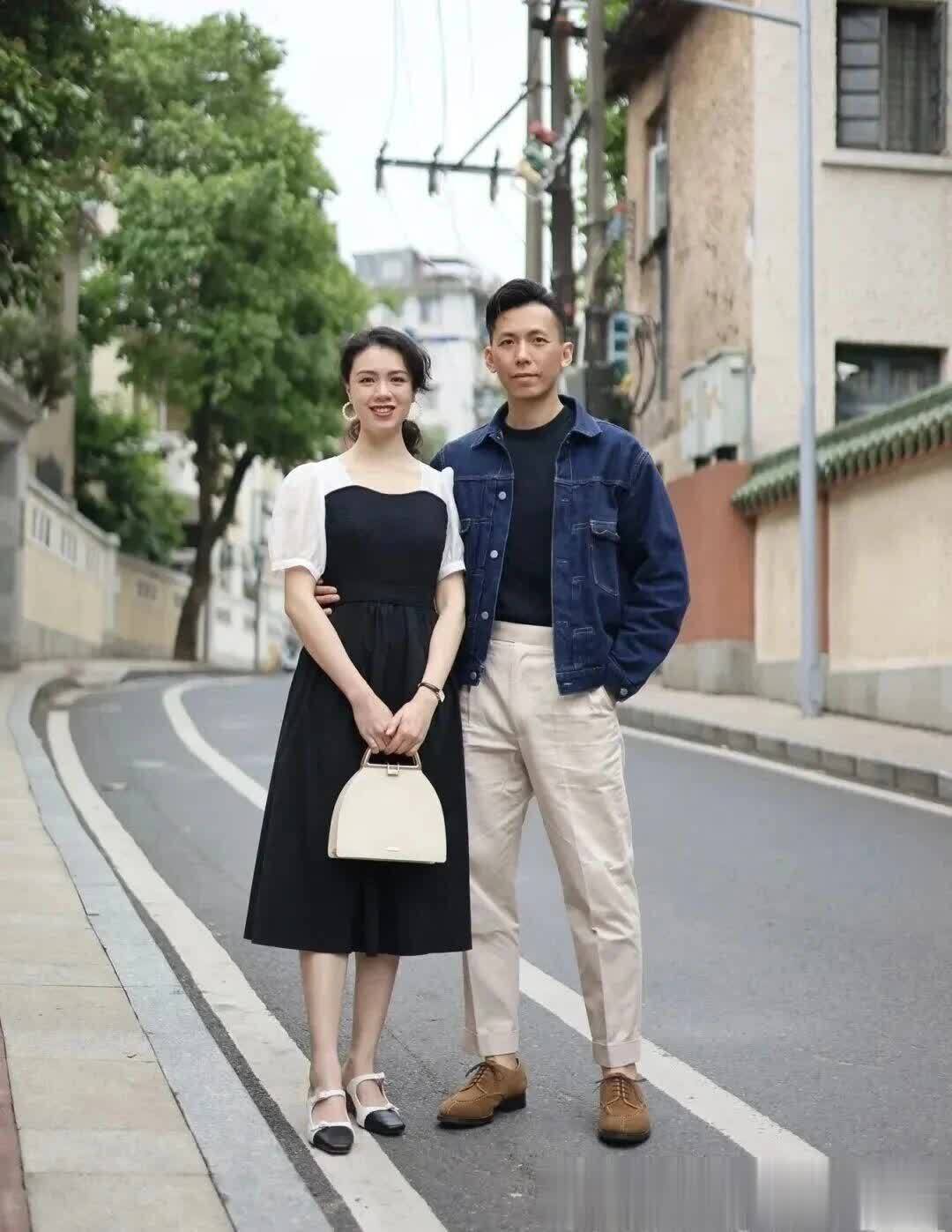 她穿着一件经典的白色连衣裙,外面搭配着简约的蓝色外套,整个人看起来既温暖又不失优雅。黑色的皮鞋与包包相得益彰,展现出简洁且高贵的气质。每一步的走动,仿佛在告诉世界,夫妻之间的相伴与成长,是如此的平凡却又珍贵。▼