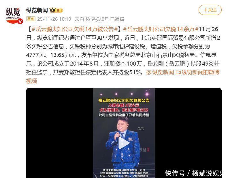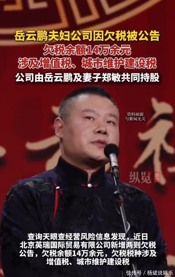 一纸欠税公告,让相声顶流岳云鹏和他的家族企业猝不及防地站上了风口浪尖。