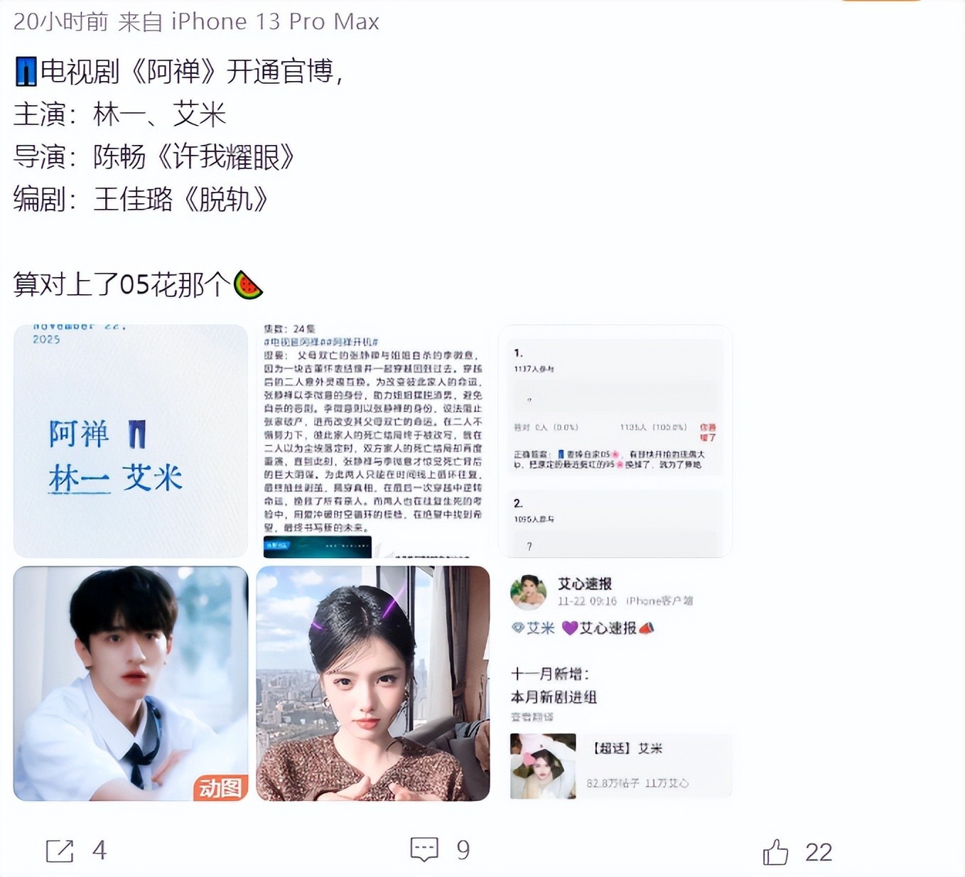现在艾米接的大部分角色都是配角,如果真的能成为《阿禅》女主,这绝对是非常不错的资源,毕竟导演是陈畅,有一定的保证,而这部剧的编剧是王佳璐,代表作品是《脱轨》,林一和王佳璐是非常熟悉的,因为林一是《脱轨》的男主。