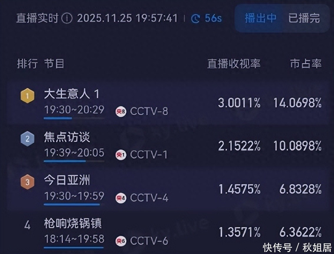 2. 央视黄金时段播出的剧集,向来是品质的代名词。由陈晓担纲主演,黄志忠、李纯等实力派演员倾情加盟,《大生意人》开播即引爆收视热潮,首播收视率迅速冲上3%,势头强劲,热度席卷全网。
