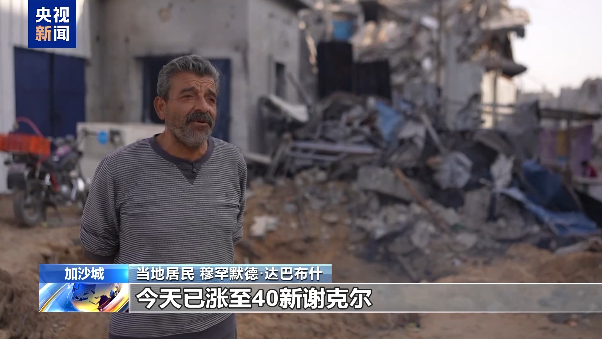 当地居民 穆罕默德·达巴布什:昨天一桶水售价30新谢克尔(约合人民币65元),今天已涨至40新谢克尔(约合人民币87元)。他们说是因为柴油价格上涨。