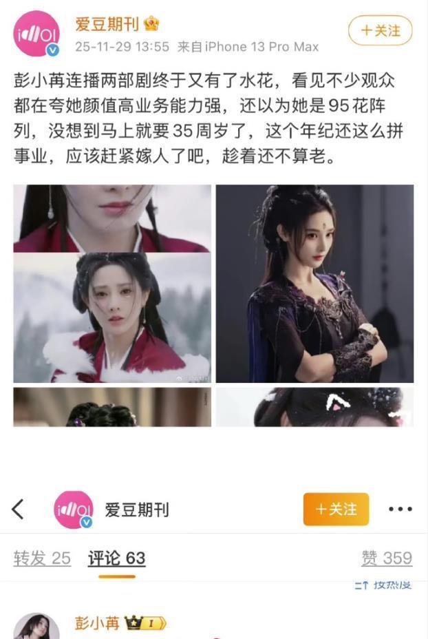 就在大家纷纷点赞她的表演时,总有些刺耳的声音冒出来。总有些过来人摆谱:这年纪还拼啥事业,赶紧嫁人才是正事!结果彭小苒直接硬气回怼:抱歉,这道理我不认!