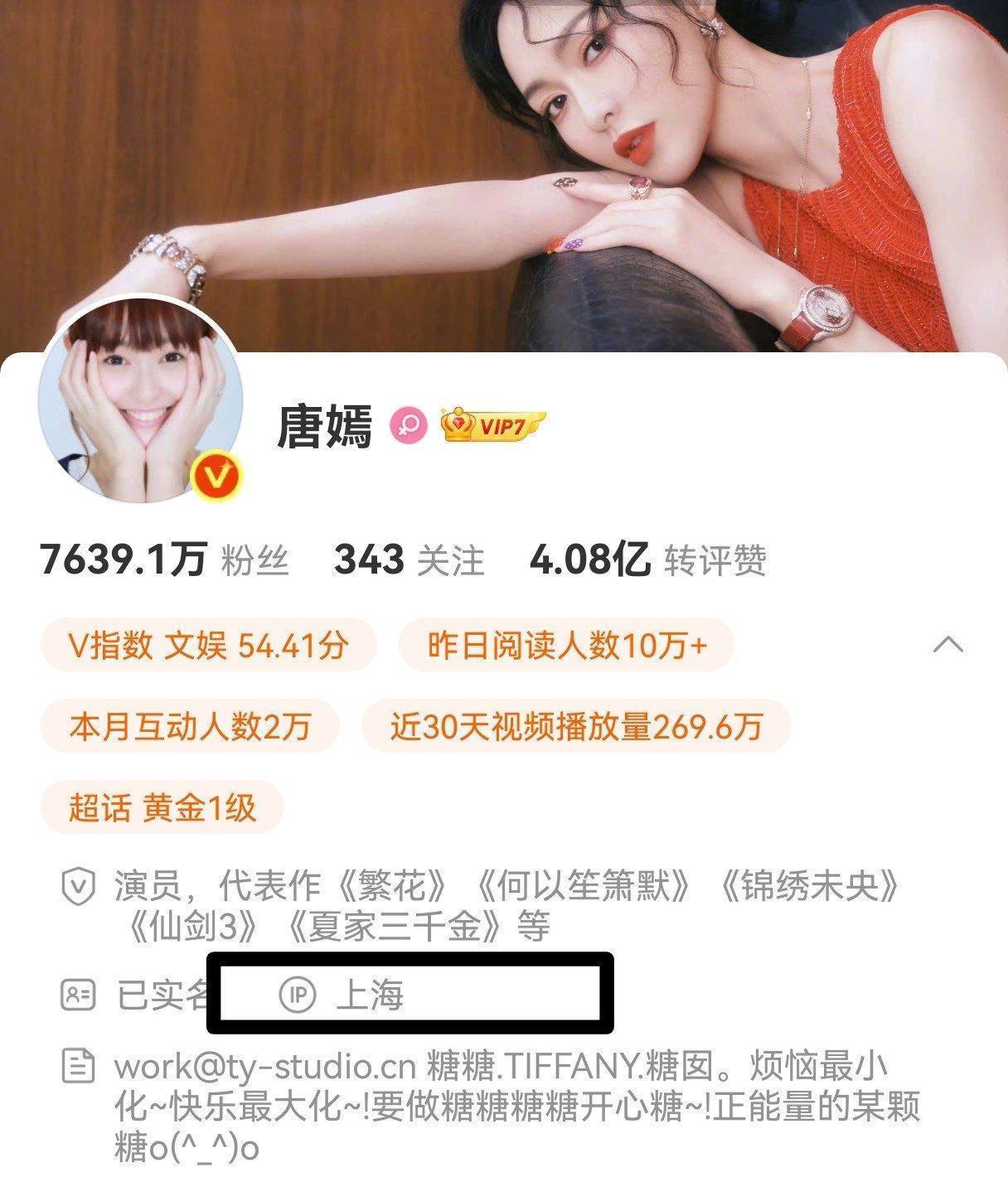不过,当网友向博主发问时,博主并未给出答复,但从唐嫣个人账号当前的IP地址来看,她人还在上海。