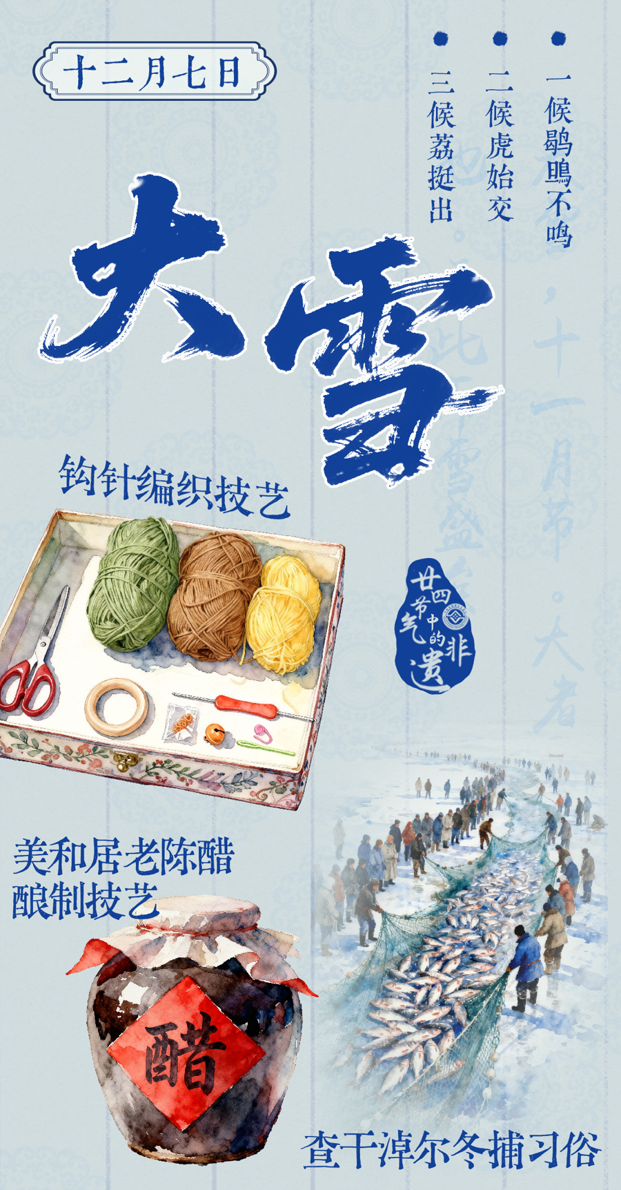 实盘配资网站 【二十四节气中的非遗】凿冰起网庆丰年,引雪穿针酿岁华