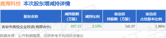 配资咨询平台 12月9日奥海科技发布公告,股东减持697.33万股