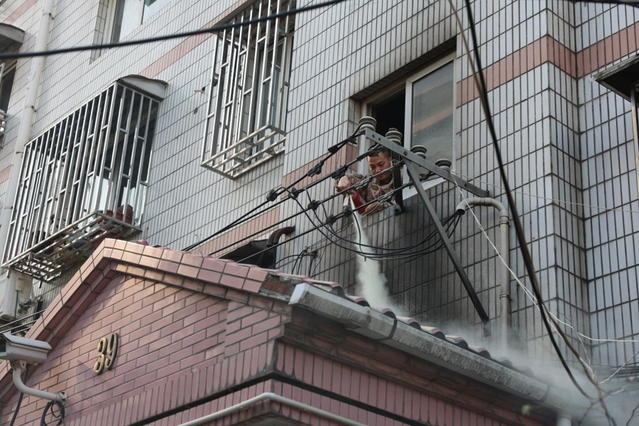 12月3日,中国海警局直属第一局执法员在看望慰问烈士遗属途中,突遇小区居民楼起火。危急关头,海警执法员挺身而出,凭借快速反应和娴熟技能,成功把火扑灭,有力保护了群众生命财产安全。