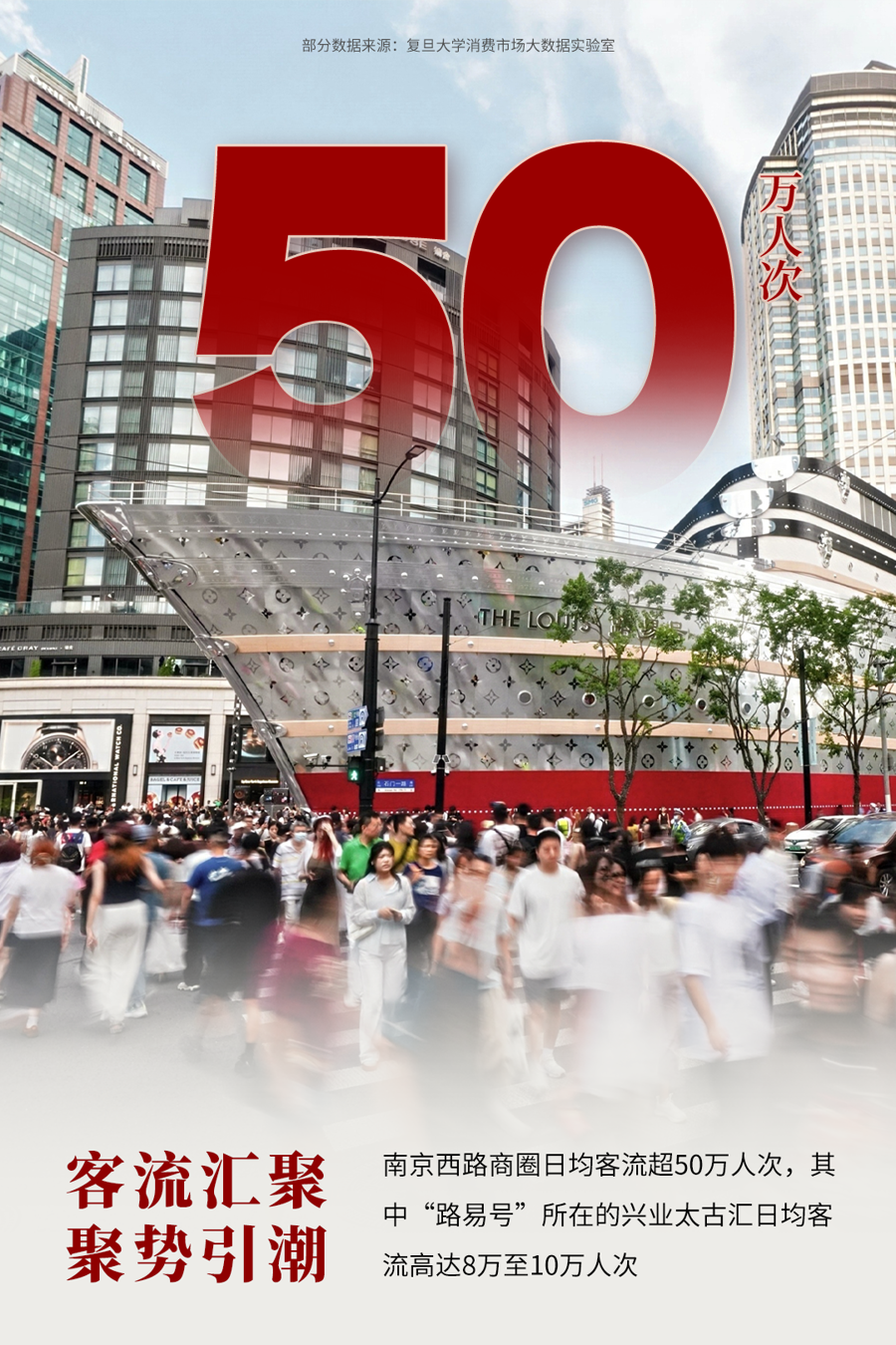 “路易号”的落地对南京西路商圈的带动效应立竿见影,形成了强劲的消费“涡旋效应”。周边重点商场销售额实现翻倍增长。兴业太古汇日均客流高达8万至10万人次。