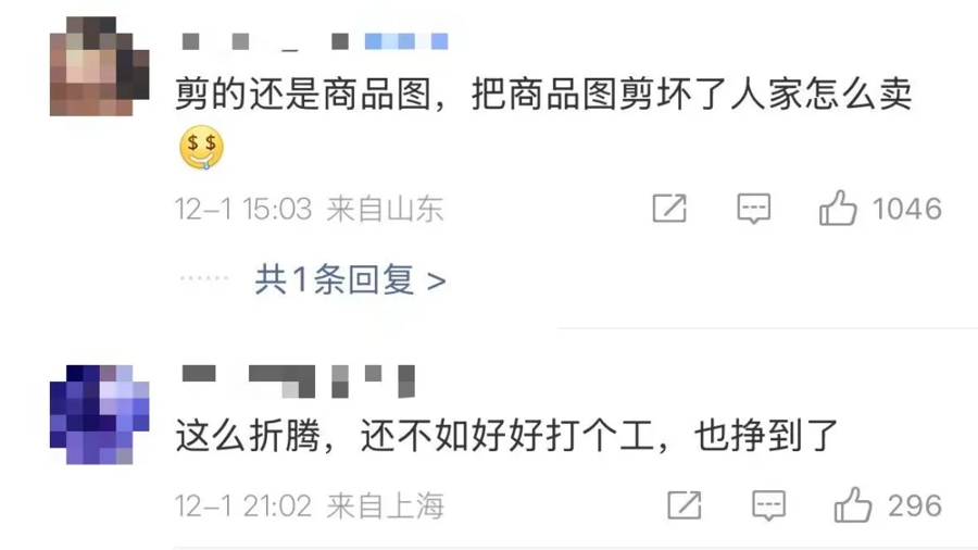 评论区里,有网友忍不住“嘲讥讥”:剪的还是商品图,把商品图剪坏了人家怎么卖?