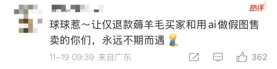 但也有部分网友认为,有些无良商家也会用AI假图诈骗买家。